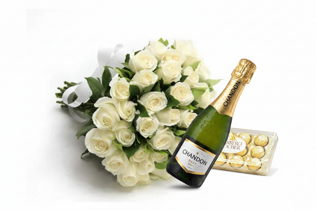 Nós ajudamos você a escolher o melhor presente para comemorar o Ano Novo! Este combo premium exclusivo reúne a elegância das rosas brancas, a sofisticação do espumante Chandon e o sabor inconfundível dos chocolates Ferrero Rocher, perfeito para brindar a virada do ano com muito estilo.